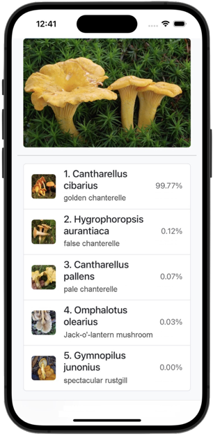 The current prototype employs ONNX-based computer vision models, including a YOLOv11n-CLS classifier capable of predicting species in 40–45 ms on an iPhone 15 Pro (and under 2 ms in the native implementation).